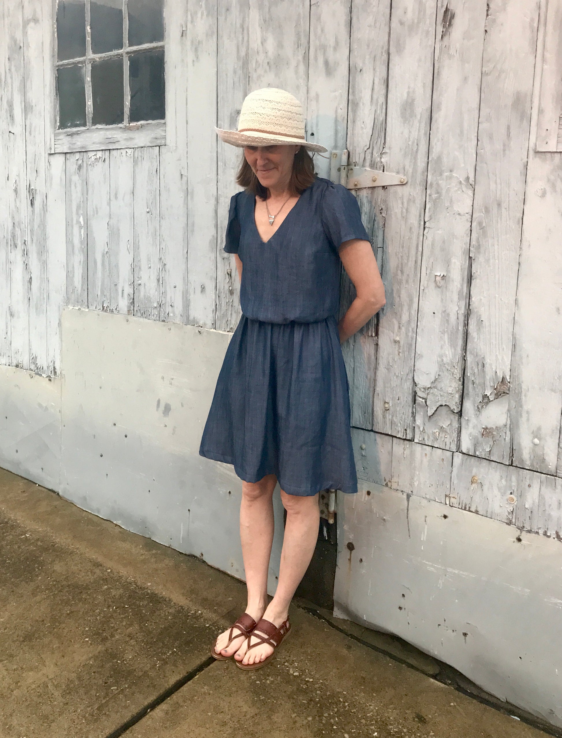 The Amalfi Dress is a beautiful feminine boho style dress. View A features an above-the-knee skirt while view B has a trendy yet classic tea length. Both views can be made with either the gathered short sleeve or the flutter sleeve and the optional in seam pockets. Bust darts and an elastic waist provide flattering shaping. The Amalfi is finished with a facing at the neckline. You can choose to receive the pattern in three different ways.