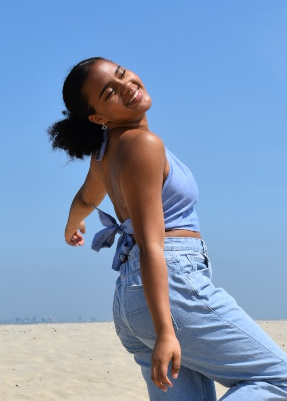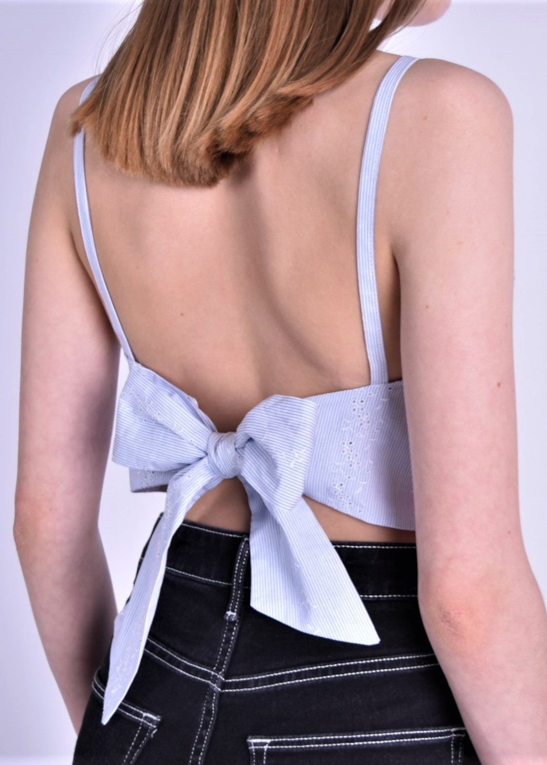 Amy has no zip or buttons making a great choice for a new maker to achieve a flattering, fun, wearable little top. It has a tie back making it easy to fit, small bust darts and shoulder straps.