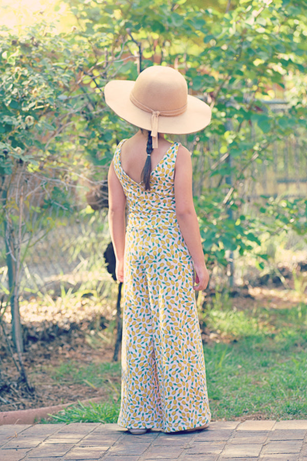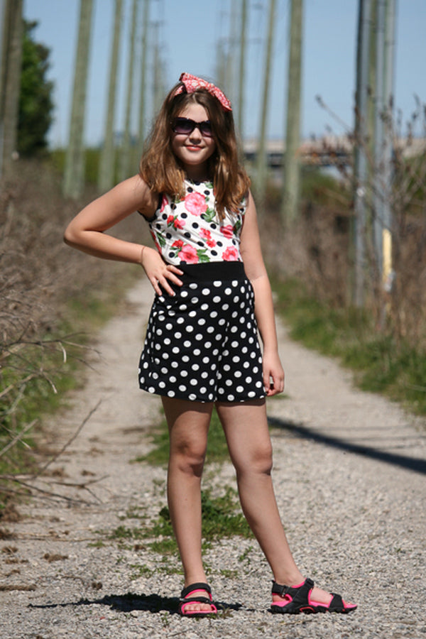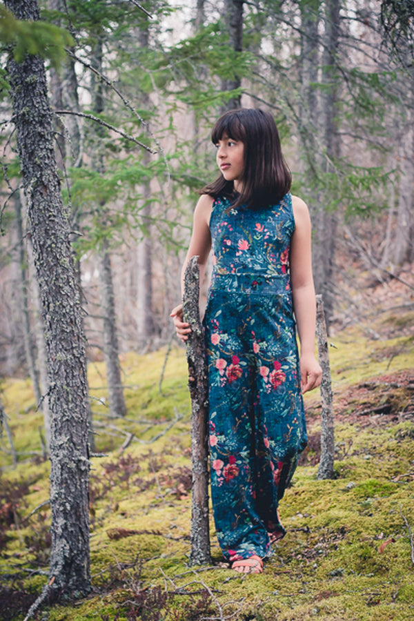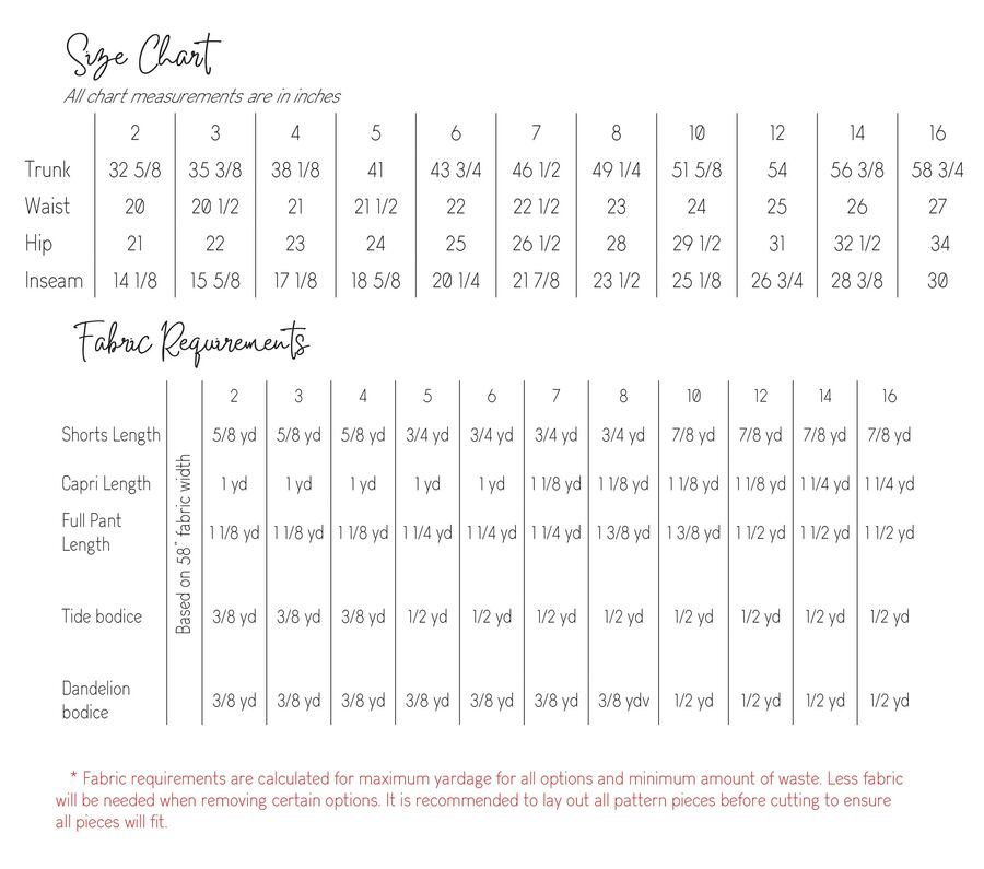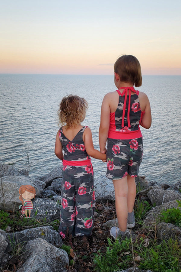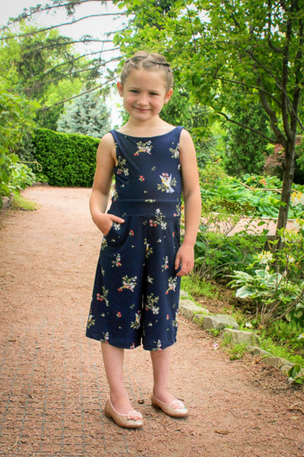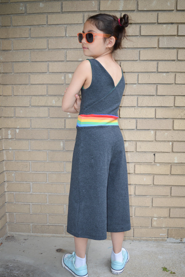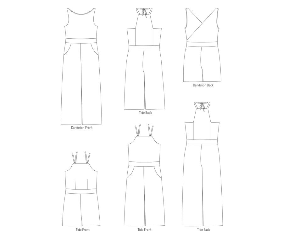 The Aspen is a knit romper/jumpsuit add-on that is designed to be combined with the bodice of the Tide dress or the peplum pieces of the Dandelion tank pattern. The waistband will be attached to the bodice of choice and then choose the shorts, capris or full leg pant option for a whole look. The style is clean and sleek on top and widening out towards the hem in a palazzo pant shape. Oh, and don’t forget the pockets!!