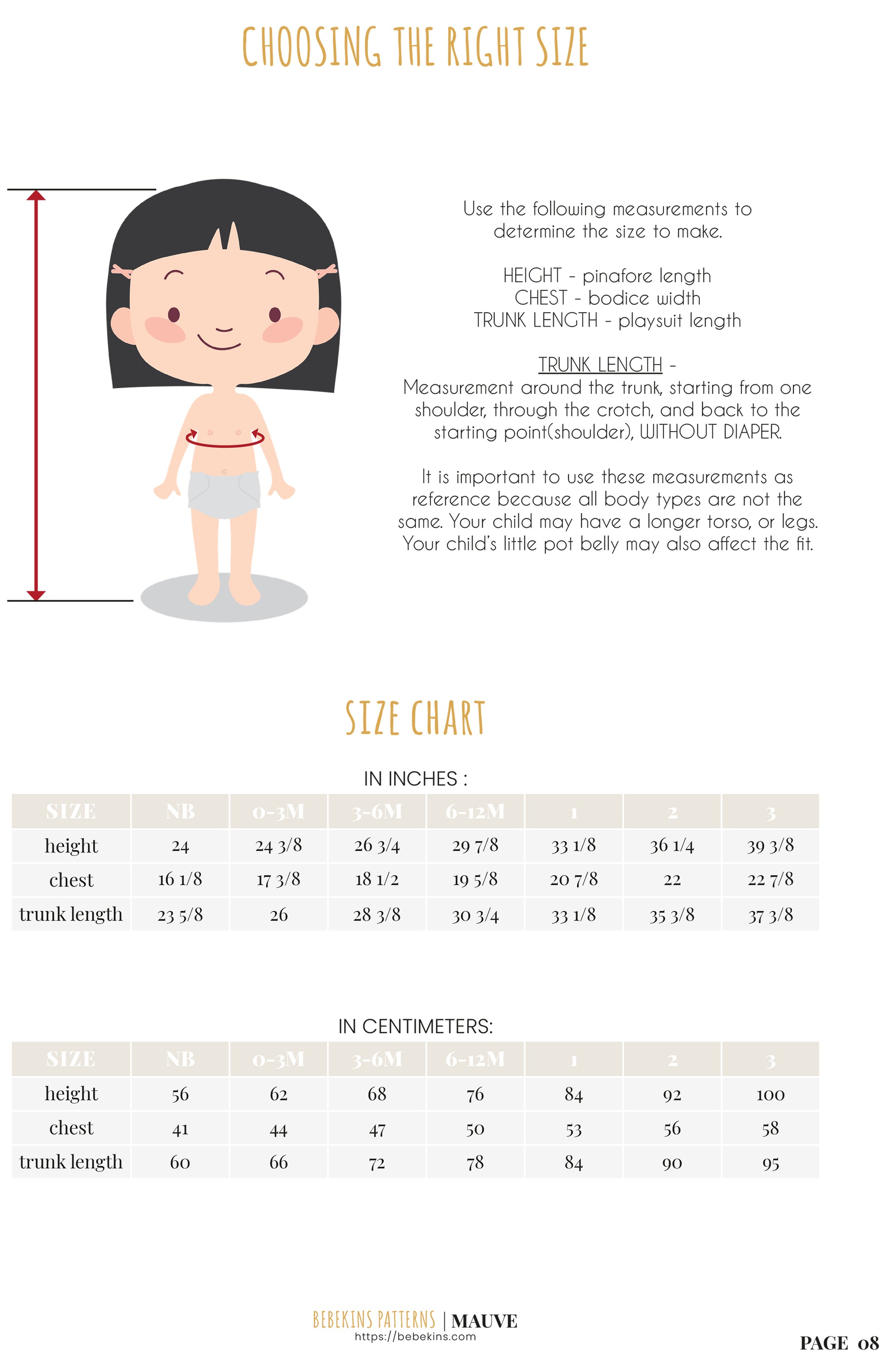 Mauve is a stylish and adorable pinafore or playsuit that is perfect for your little girl's wardrobe. This versatile pattern can be used as a stand-alone piece or can be paired with layers on cold winter days. The pattern is designed for sizes NB to 3 years old and features 2 back styles: fixed or elastic, and 2 style options: pinafore or playsuit. Additionally, the optional ruffle shoulders add a touch of sweetness to this already cute piece.