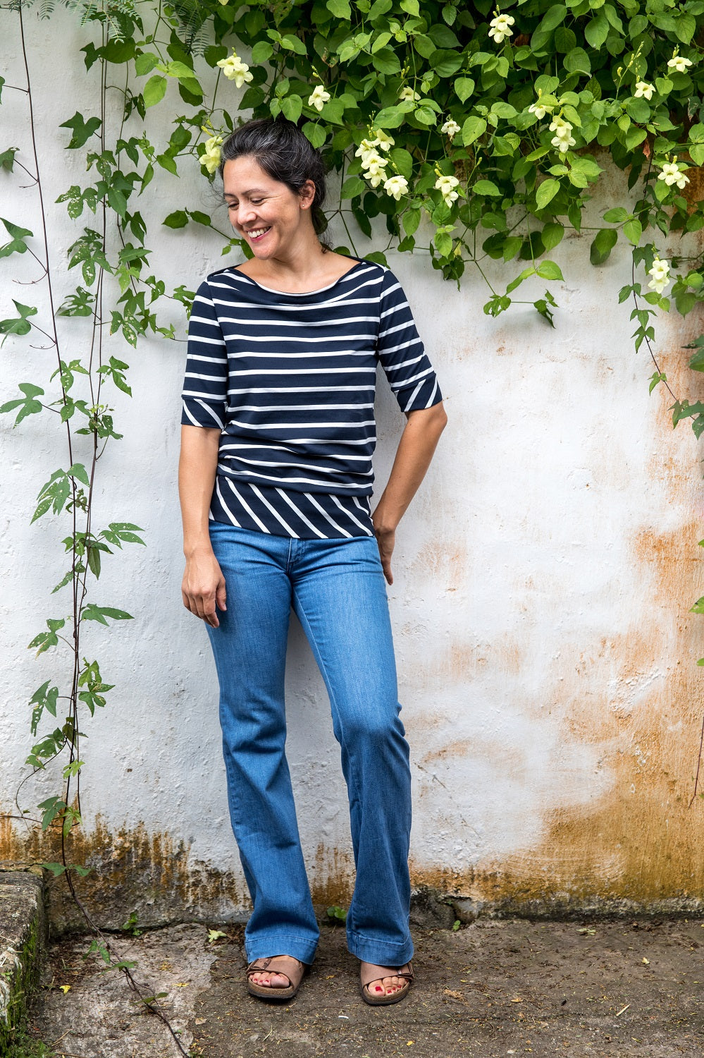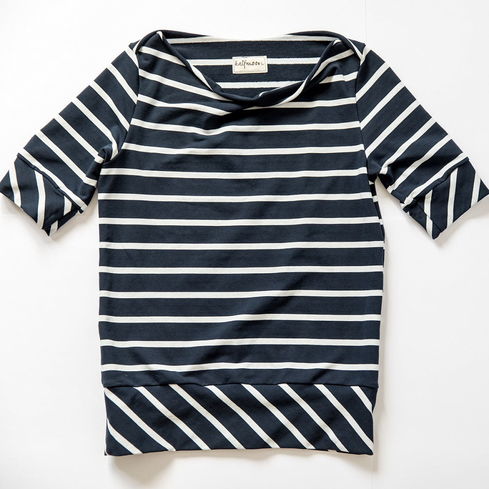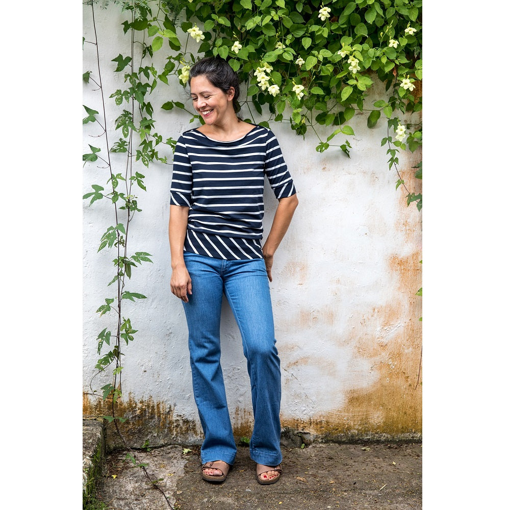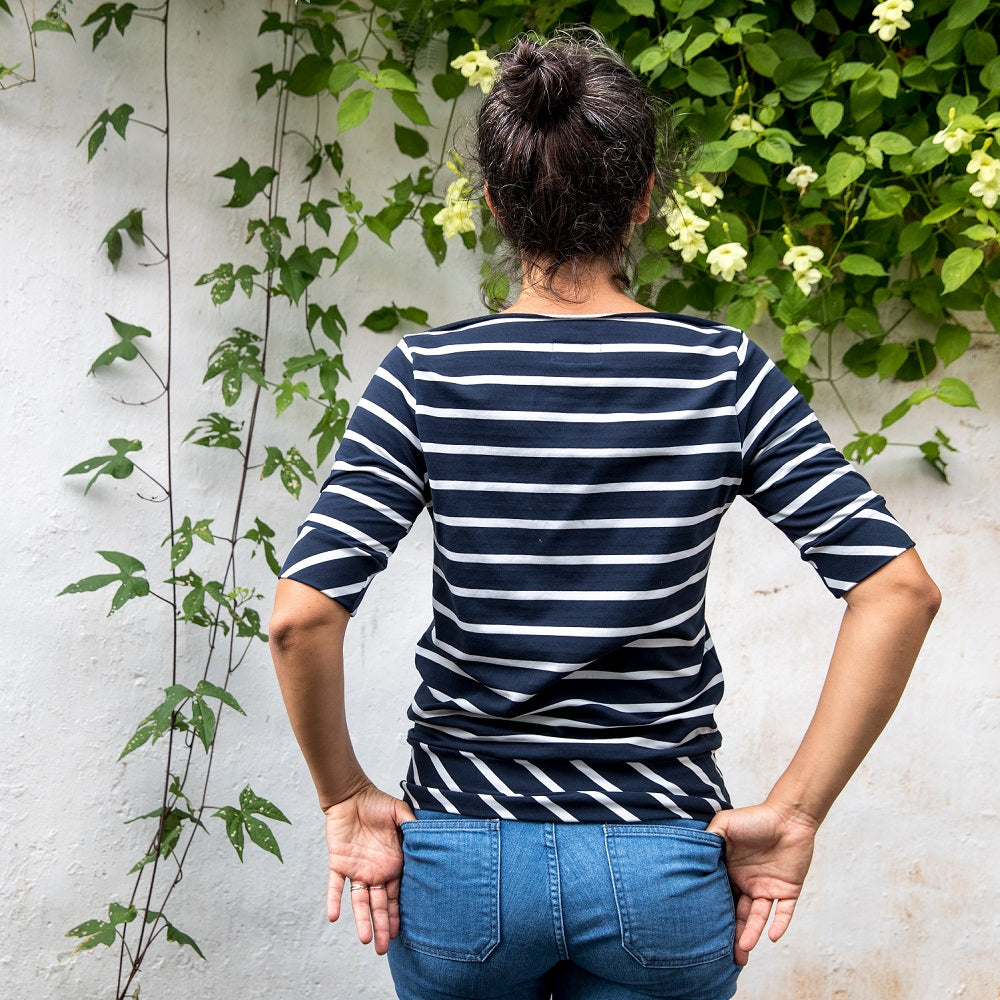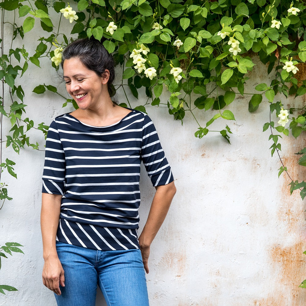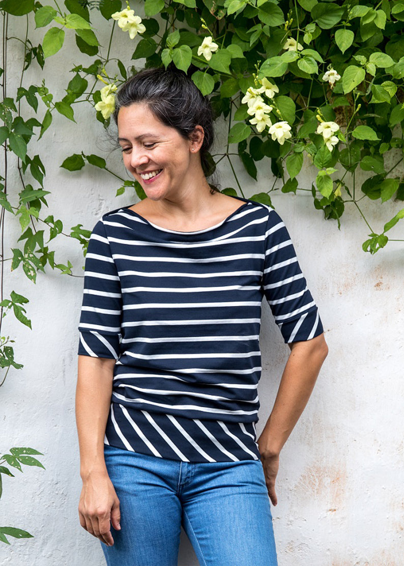 View A features a wider neckline, displaying a little extra shoulder. The raw edge allows the fabric to roll over nonchalantly, exposing the inside of the fabric and creating a cowl neckline, depending upon the knit of the fabric. View B is a true everyday boat neck with mini box pleats. Depending on your choice of fabric, this universally flattering single pattern can truly take you from the gym to the opera and is sure to become an absolute favorite in any capsule wardrobe.