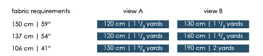 This pattern works best with light- to medium-weight knits with some drape, such as jersey, bamboo or rayon jersey, interlock, t-shirt weight merino, French terry and lightweight sweat-shirting, with 25% to 100% stretch. Fabric requirements are based on a size 10. They assume you are using a one-directional print as well as the same fabric for the neck, arm- and/or waistbands as the bodice + sleeves. Less fabric may be needed for smaller sizes, solids or two-directional prints.