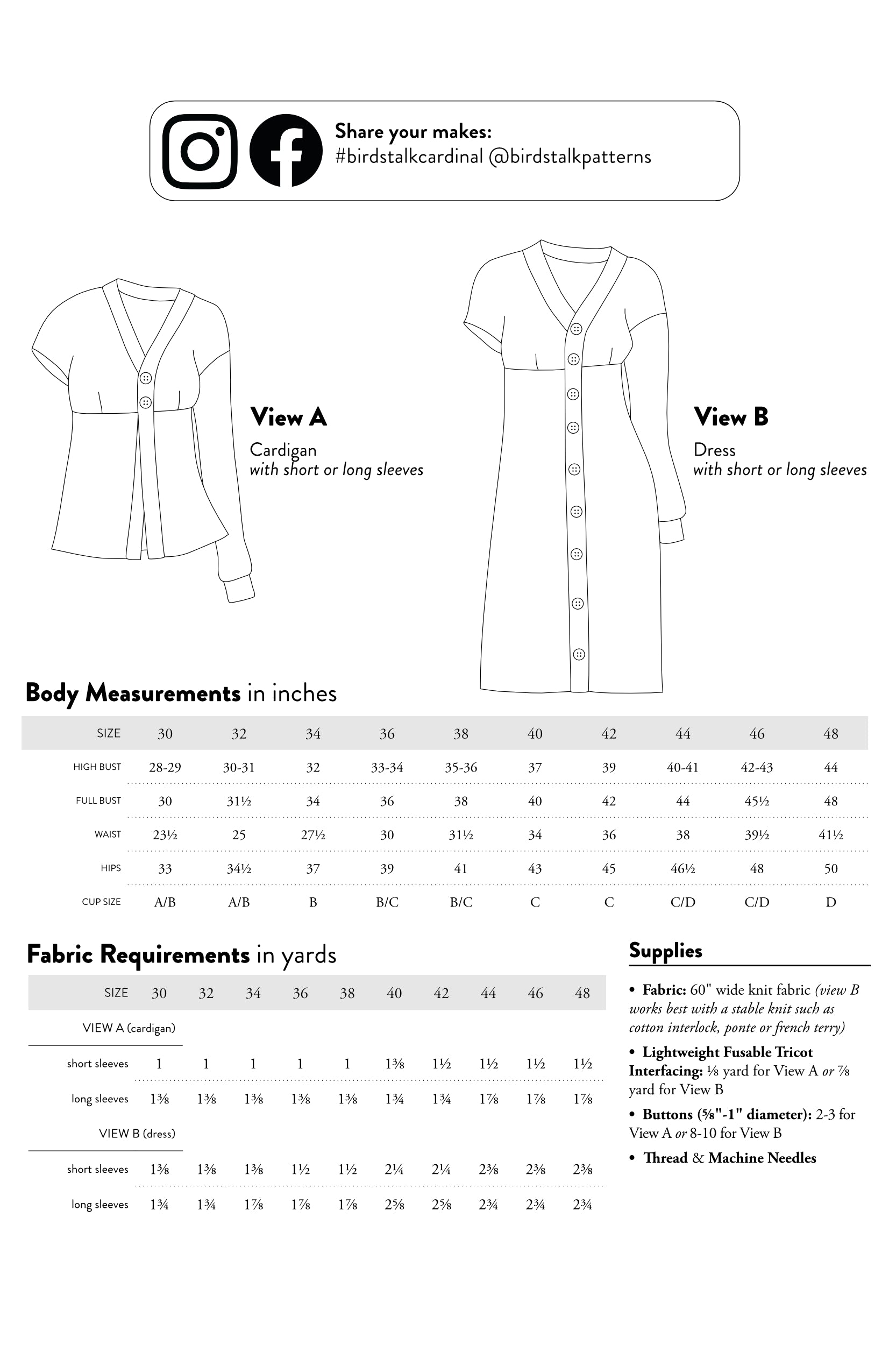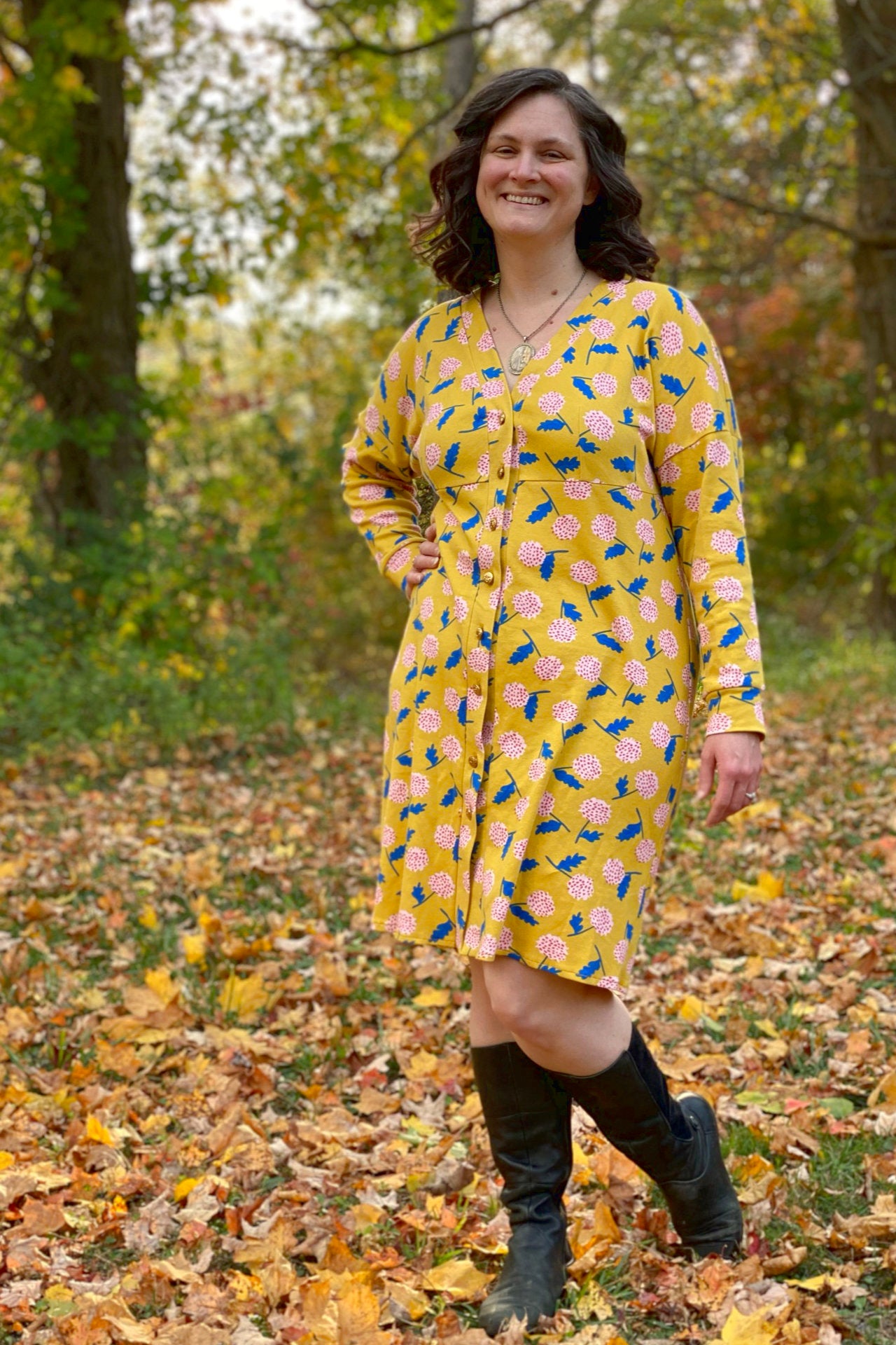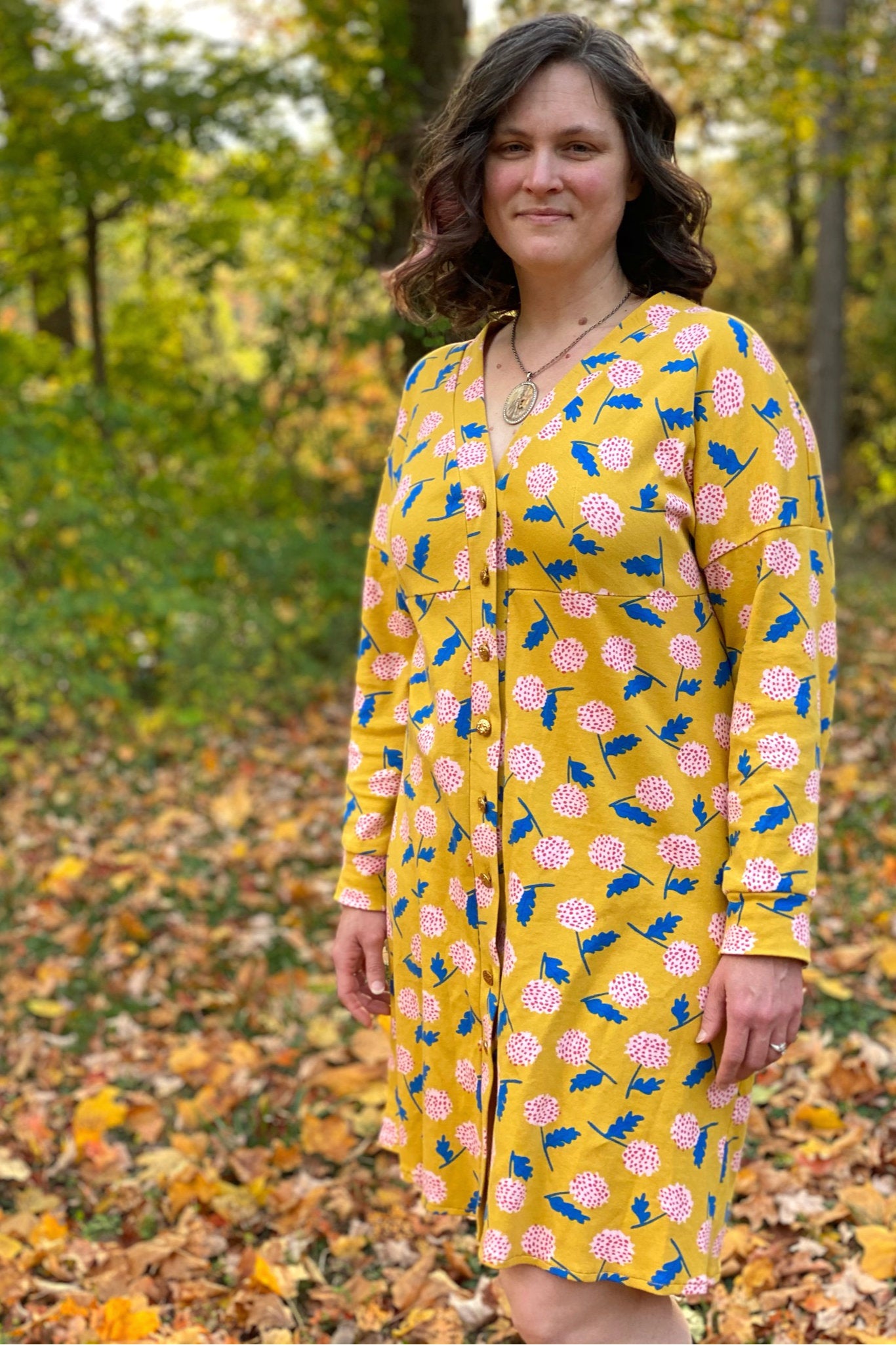 The Cardinal Cardigan is perfectly versatile for transitional seasons. This knit cardigan can be made in both short or long sleeves. It’s dressy, yet comfy. And as an extra benefit, view B is a knee length button down dress. This cardi dress is sure to be a fall and winter staple in your closet, especially since it is snuggly enough to be secret pajamas, yet dressy enough to look put together.