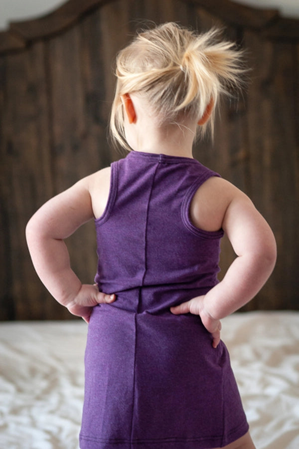 The Cattail Tank/Dress comes in 3 length options: tank, knee-length dress and maxi dress. The fitted sheath style flows into a slight A-Line flare making it sleek and athletic looking while still allowing for movement. The front features multiple vertical panelling options or one simple solid piece. The back showcases 2 different options: a simple racer-back or a set of angled panels with fun triangle details at the neckline and the hem of the tank.