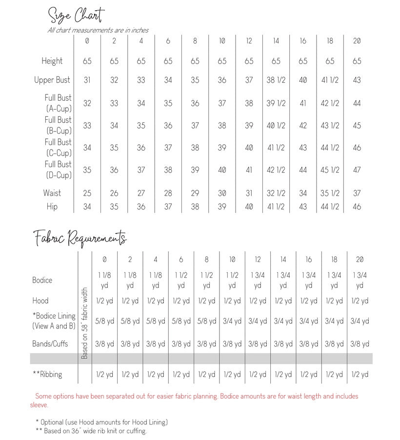 Cuffing - Quality rib knit fabrics with good recovery are recommended for the cuffs, hem and hood trim. Regular knits can be used but will require the long sleeve opening to be gathered to fit the cuff. Lightweight fabrics are not recommended for the hood trim as it may appear floppy. Fabrics with some structure are recommended for the hood trim.