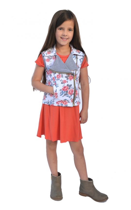 A cute, fitted, cropped knit jacket or vest with moto-styling, an asymmetrical zipper, and two part sleeves. Options include a traditional collar, moto collar, or no collar, zippers on the sleeves, and welt pockets. The yoke, collar, and front lapels are fully faced so your garment will be beautifully finished inside and out. Perfect for sweatshirt fleece, french terry, cotton interlock, micro fleece, or any heavier weight knit fabric with at least 10% stretch.