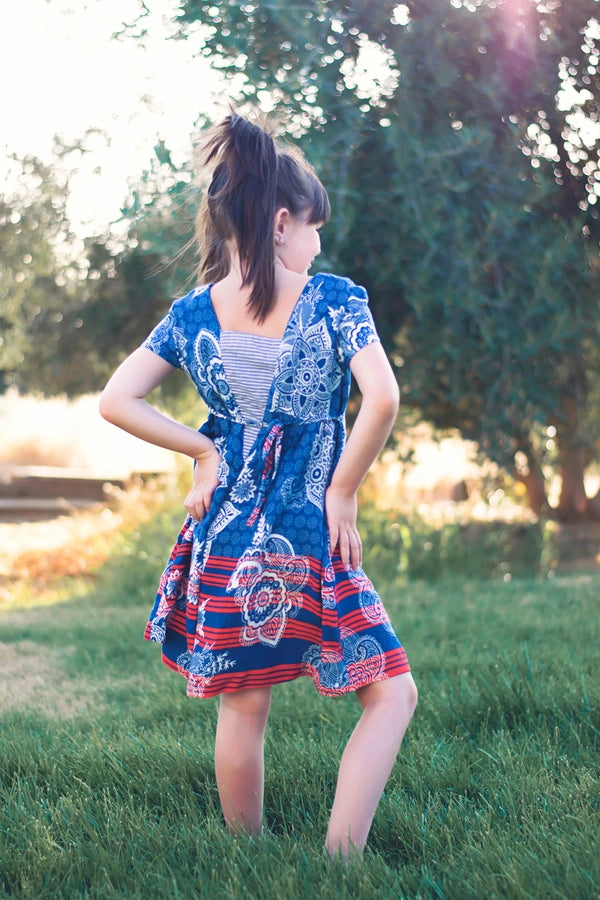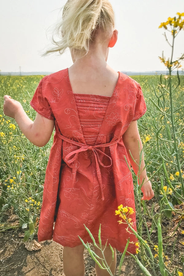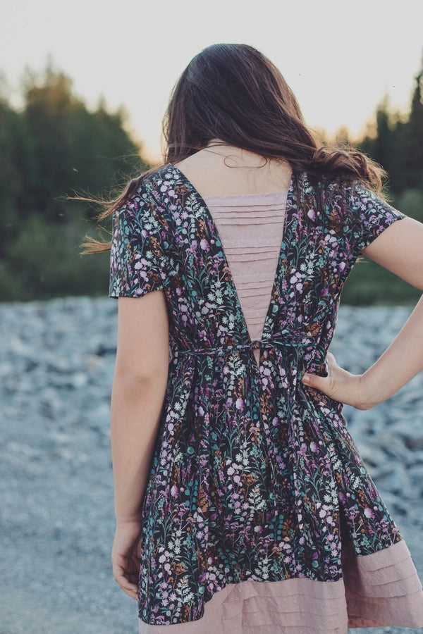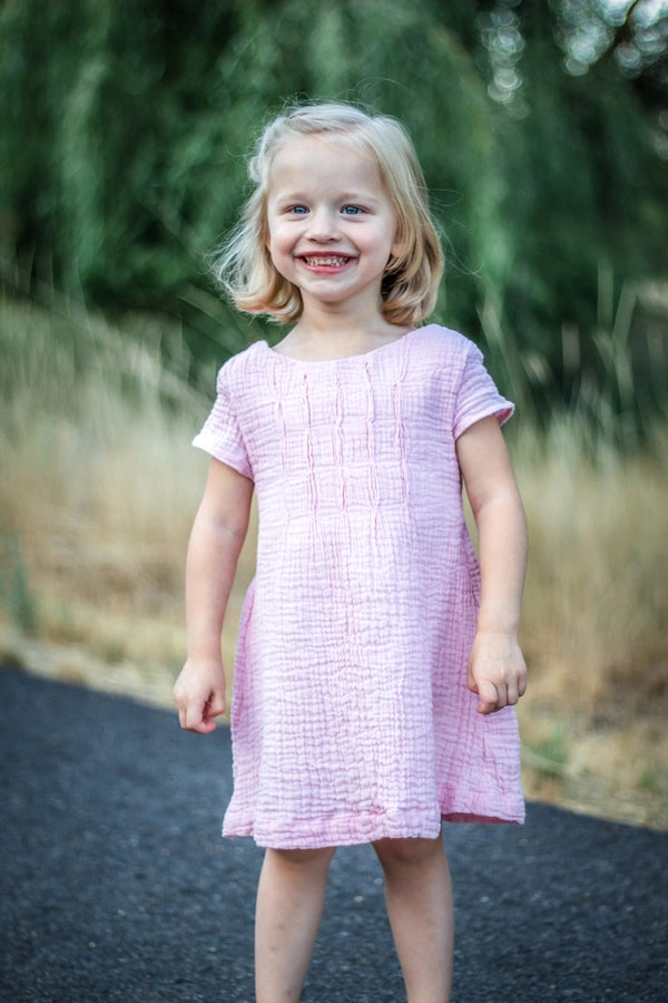 The Haze was very specifically created with linen in mind. A casual, easy-to-wear dress that can go many places and suits the great qualities of linen fabric. The front bodice features cute bubble tucks or box pleats that can be sewn regular or inverted. The back V is sectioned into narrow horizontal pleats or it’s a perfect spot to showcase some heirloom embroidery. There are two lengths - shirt and knee length dress. The shirt hem is simple. The dress length is also simple, but has an option for a deep pleated hem section. The waist ties cinch in the waist for a pretty silhouette. It makes me think of picnics in the park and big straw hats.