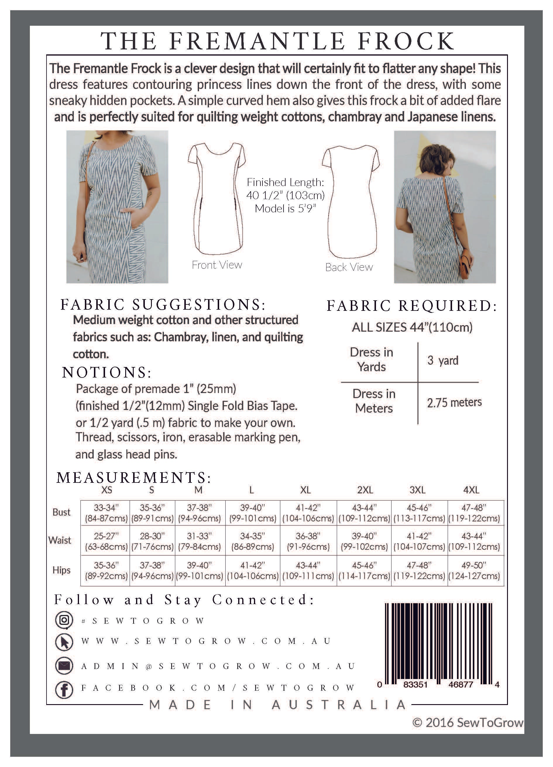 The Fremantle Frock is a clever design that will certainly fit to flatter any shape! This dress features contouring princess lines down the front of the dress, with some sneaky hidden pockets. A simple curved hem also gives this frock a bit of added flare and is perfectly suited for quilting weight cottons, chambray and Japanese linens.