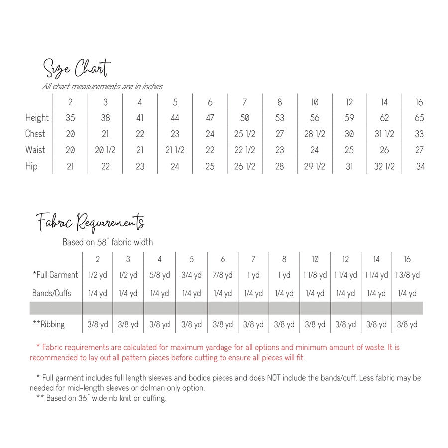 Fabrics: Mid to heavy weight knit fabrics with a minimum 25% stretch such as cotton jersey, french terry, bamboo french terry, stretch velvet, and more. 2-way and 4-way stretch fabrics can be used.