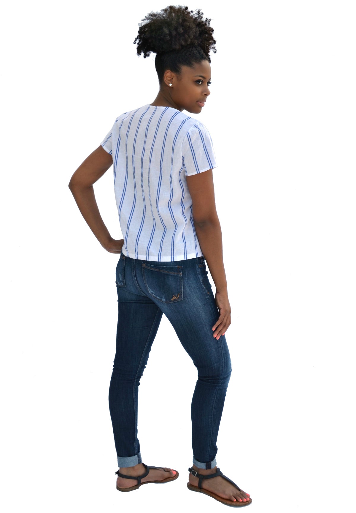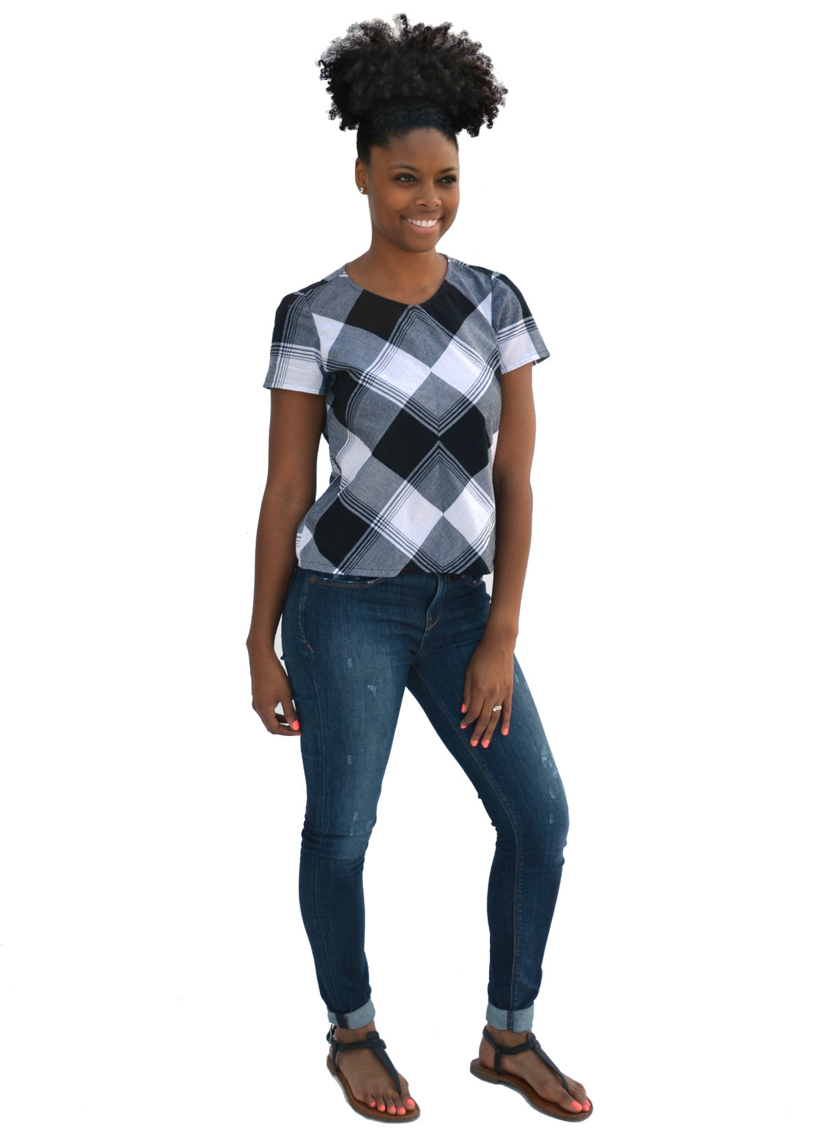 The neckbinding can be applied as a hidden facing on the inside of the garment or an exposed binding for added detail. The pattern also contains notes for cutting the front on the straight grain or eliminating the front seam. Lightweight woven fabrics such as shirting, voile, lawn, double gauze, rayon, viscose, or silk blends work best for this pattern. With all of these options, the Key Largo will be a workhorse in your pattern library!