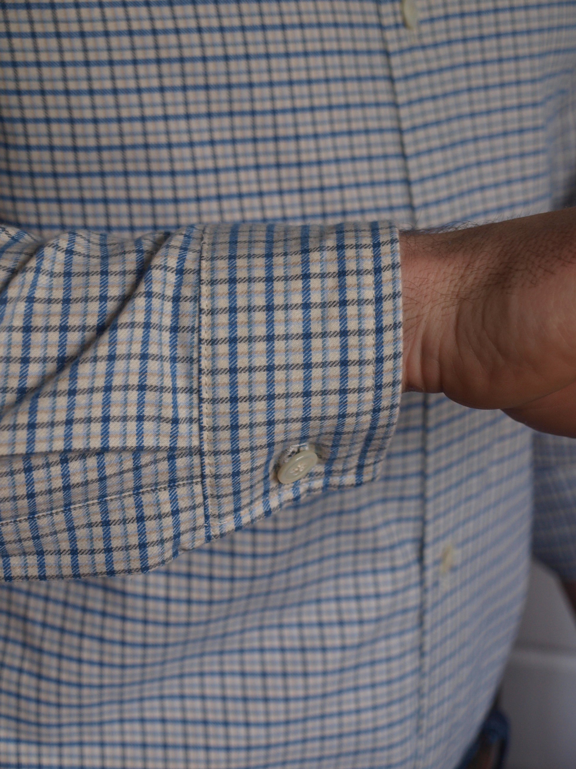 This long sleeved shirt features collar and collar stand, single cuffs, a double yoke, sleeve plackets and a curved hemline. The pattern allows for 4 inches of ease through the body, and is tapered at the waist, creating an elegant silhouette.