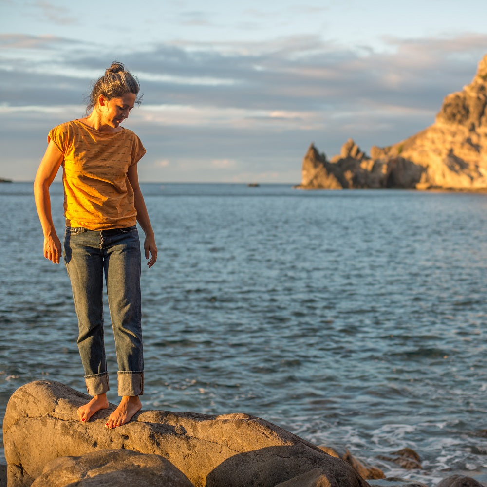 Reminiscent of iconic classics, the halfmoon 101 JEANS are lower-rise, straight leg and designed for a non-stretch (selvedge) denim. Designed to be snug around the hips and upper thighs, the halfmoon 101’s will curve nicely around your waist and hug your hips before straightening out from just above the knee toward the ankle. There is an option for zipper or concealed button fly and the instructions will walk you through flat-felling the seams to create a simple look with a truly individual fit.