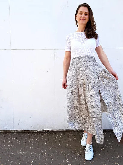 The pattern includes detailed instructions and illustrations to guide you through the whole process. Learn to sew a pinhem, french seams, install an invisible zip and how to do an elastic waistband. You can choose to finish the inside with zigzag/overlock or you can give the beautiful french seams a go to create a lovely and neat garment on the inside as well.