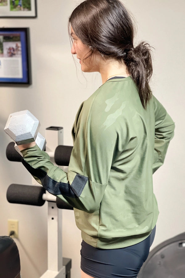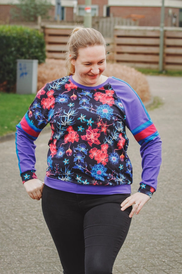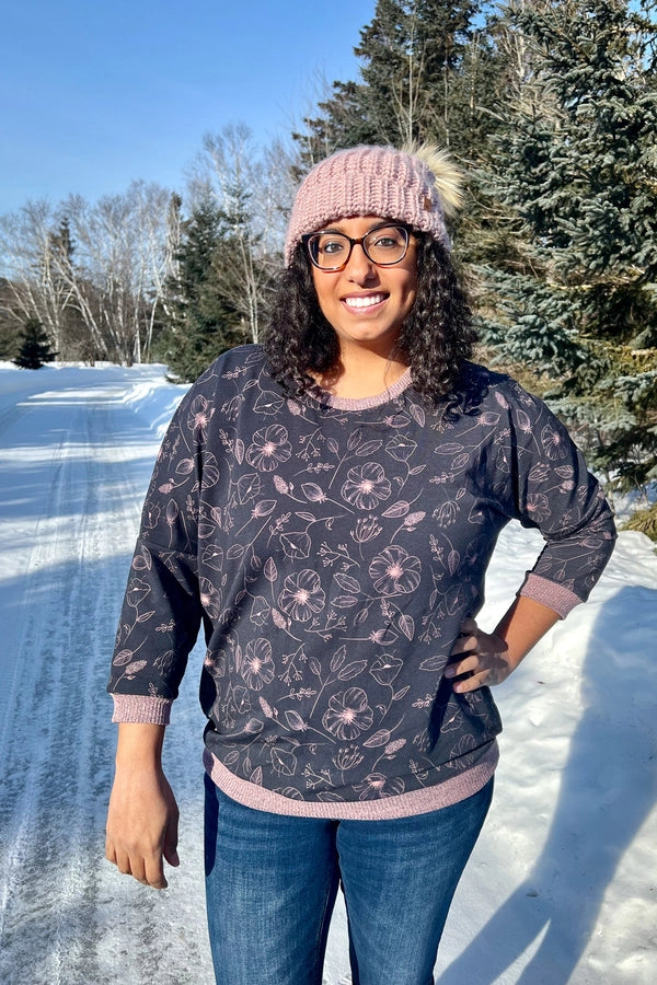 This semi-fitted top combines raglan and dolman sleeves in one pattern. Use the pattern to create a regular raglan top, dolman top, or a combo with one of each sleeve. Sleeve options include a long sleeve with wide cuff meant to come up over the bottom of the hand or a 3/4 length sleeve meant to be pushed up for a relaxed, comfy look. This is a very quick sew that can be accented with unique arm details. Wear with a pair of Tamarack tights or Trail joggers.
