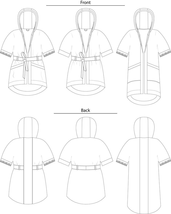 This oversized coat/cardigan has been designed with a crop elbow length sleeve for a fun casual feel in knit and woven fabrics . It’s great for warmer spring/fall days, layering over a long sleeve sweater/shirt or pairing with our free Permafrost faux sleeves accessory. Available in 2 lengths with both options featuring a high-low hemline. Large pockets, belt and back stripe detail are all optional, as well as a narrow piping along the stripe and/or front binding.