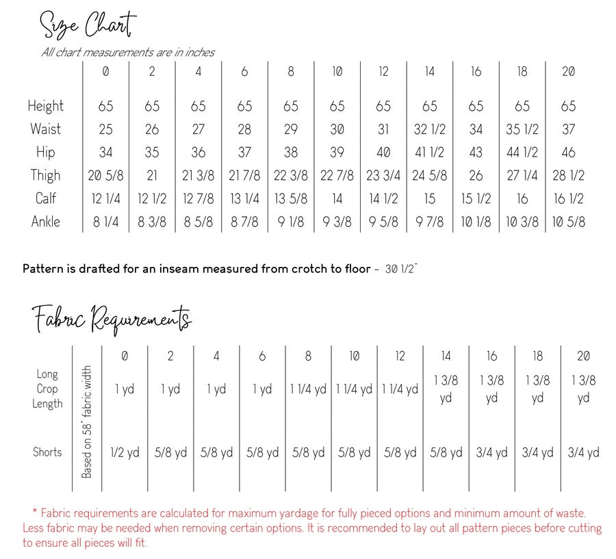 - 1/4-3/8" braided or clear elastic for the waistband (optional when using waistband fabric with good recovery.)
