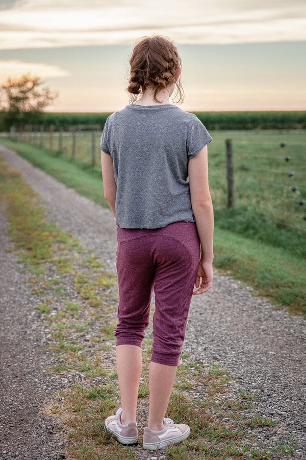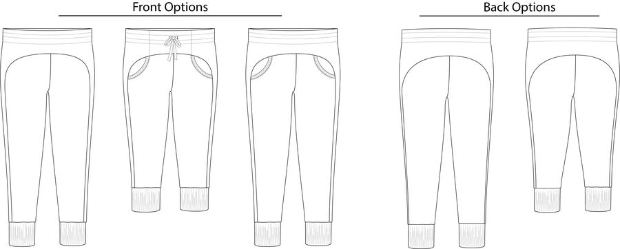 The Miss Trail Joggers are a tapered leg jogger that can be made as either capris or full length pants. Front pockets and a front waist tie are both optional. The waistline uses the fold-over waistband method with 3 rows of topstitching to secure it and give it a nice clean finish. Curved style lines add to the overall soft and cozy look. These joggers are also available bundled together with the girls Trail Joggers.