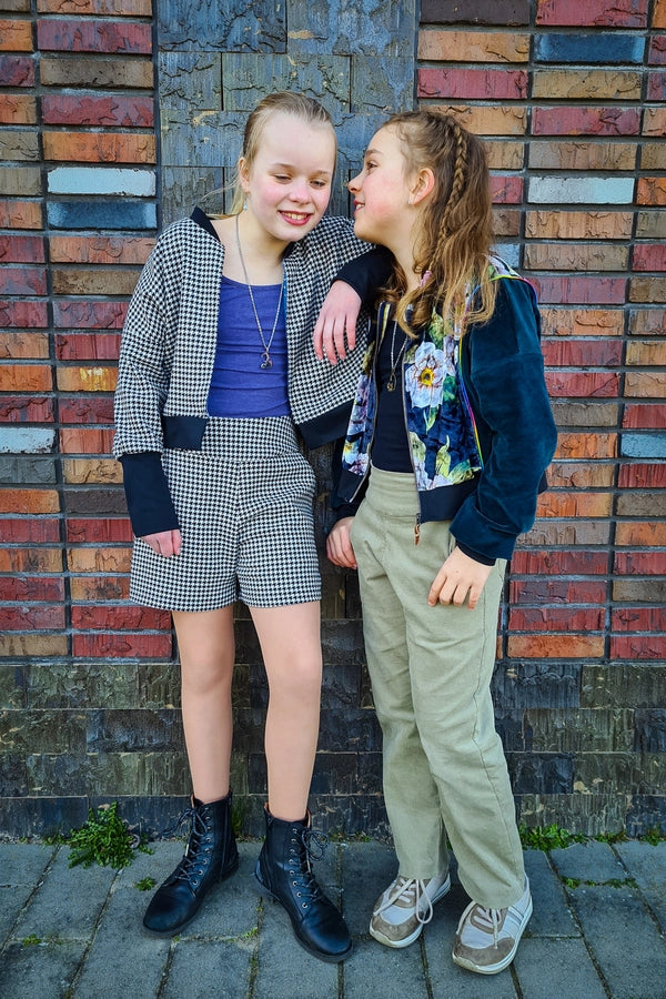 The Junior Miss Wood Lily Pants are woven high waist pants or shorts with a side zipper. Options include front and back pockets, an off-set belt and three different cuff/hem styles for the pants version (flat front with elastic back, elastic casing the whole way around or straight leg with simple hem).