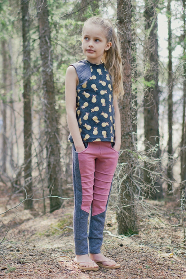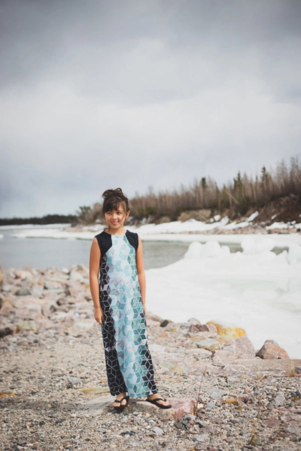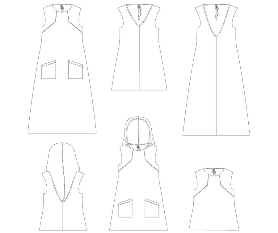 The Moss is a dress with angular lines and an oversized, optional hood. With the top, knee and maxi length options this pattern can create multiple looks. Pair the top with the Railway joggers for a cool “skater girl” vibe. Use the knee length for a swim cover over the Narwhal swimsuit. Choose the simple V back without the hood and the maxi length and it’s an elegant, but edgy summer dress. As always, your options create your special look.