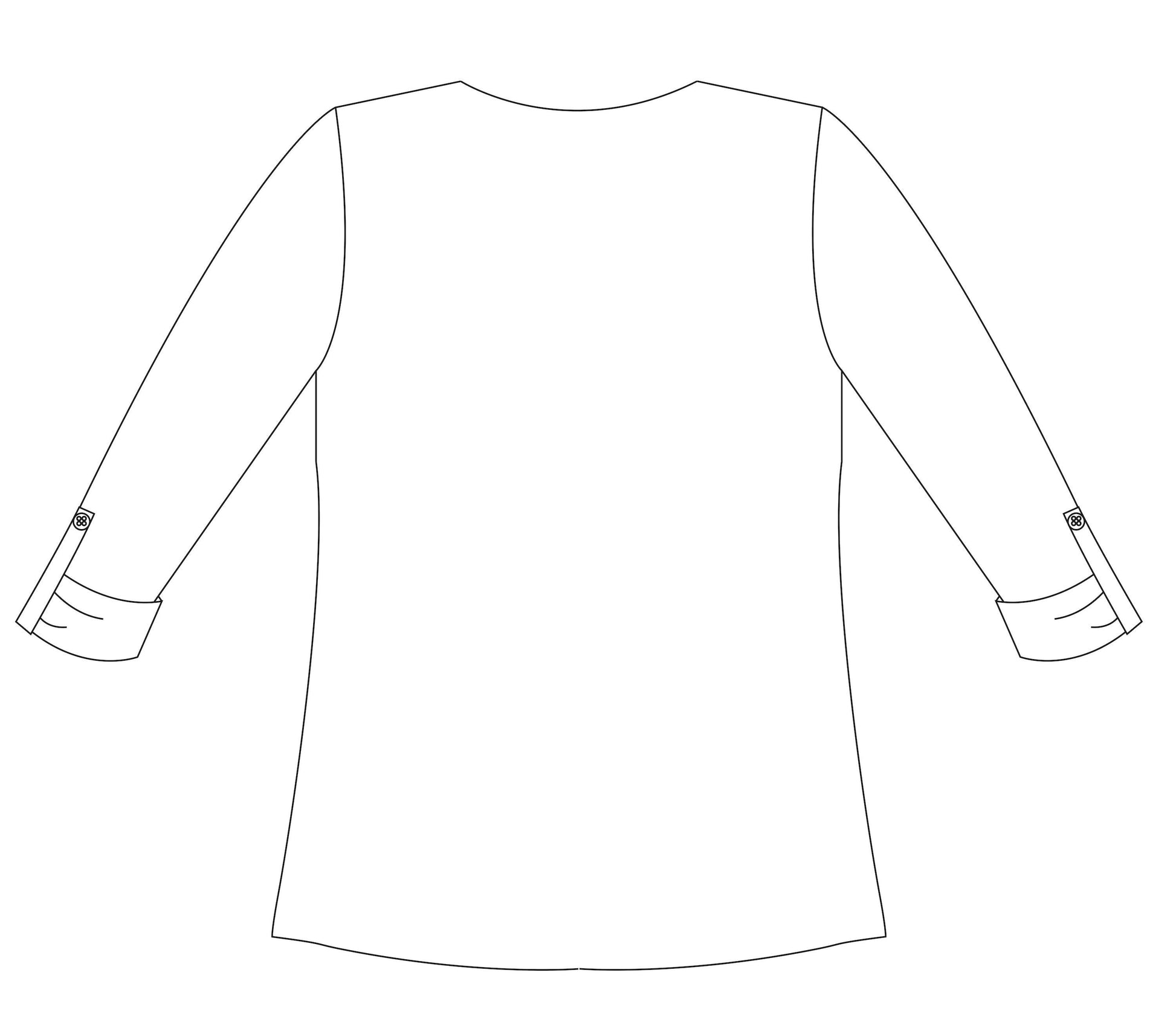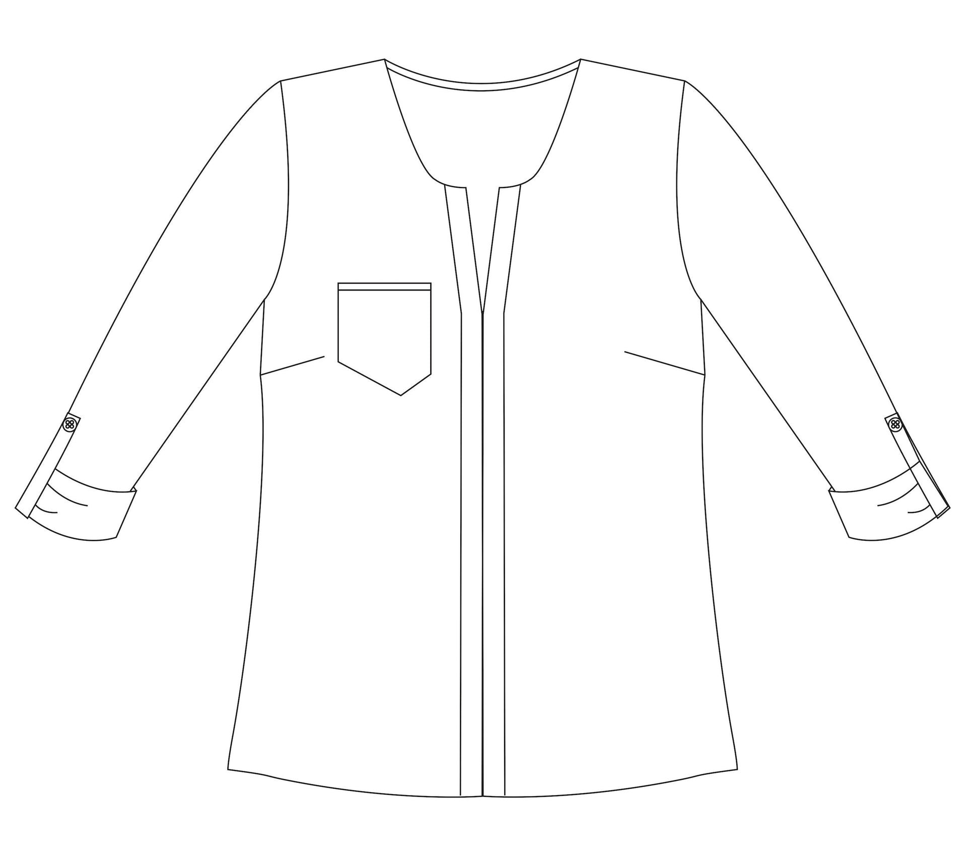 The Natalie Top is a loose fitting long sleeve top with a pleated front detail and an optional pocket. The sleeves can be rolled or scrunched up and fastened with a buttoned tab. The neckline is finished off with binding. The neck binding, button tab and pocket trim look fantastic in a contrasting fabric.