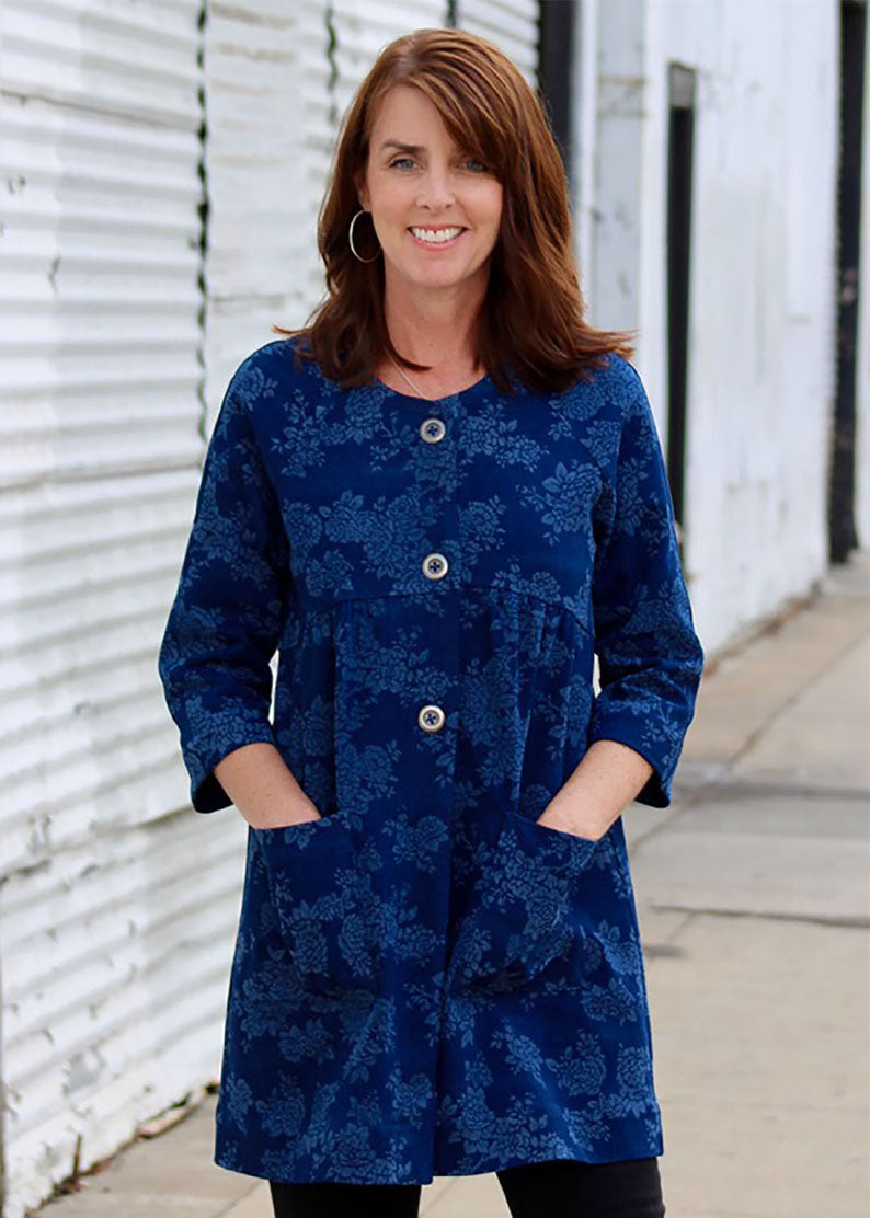 Introducing the New Dover Jacket - an updated version of our classic jacket pattern that now includes a car coat length option, as well as a longer 3/4 sleeve and expanded sizing to accommodate a wider range of body types. This jacket is a versatile addition to your wardrobe that can be dressed up or down, making it perfect for any occasion.
