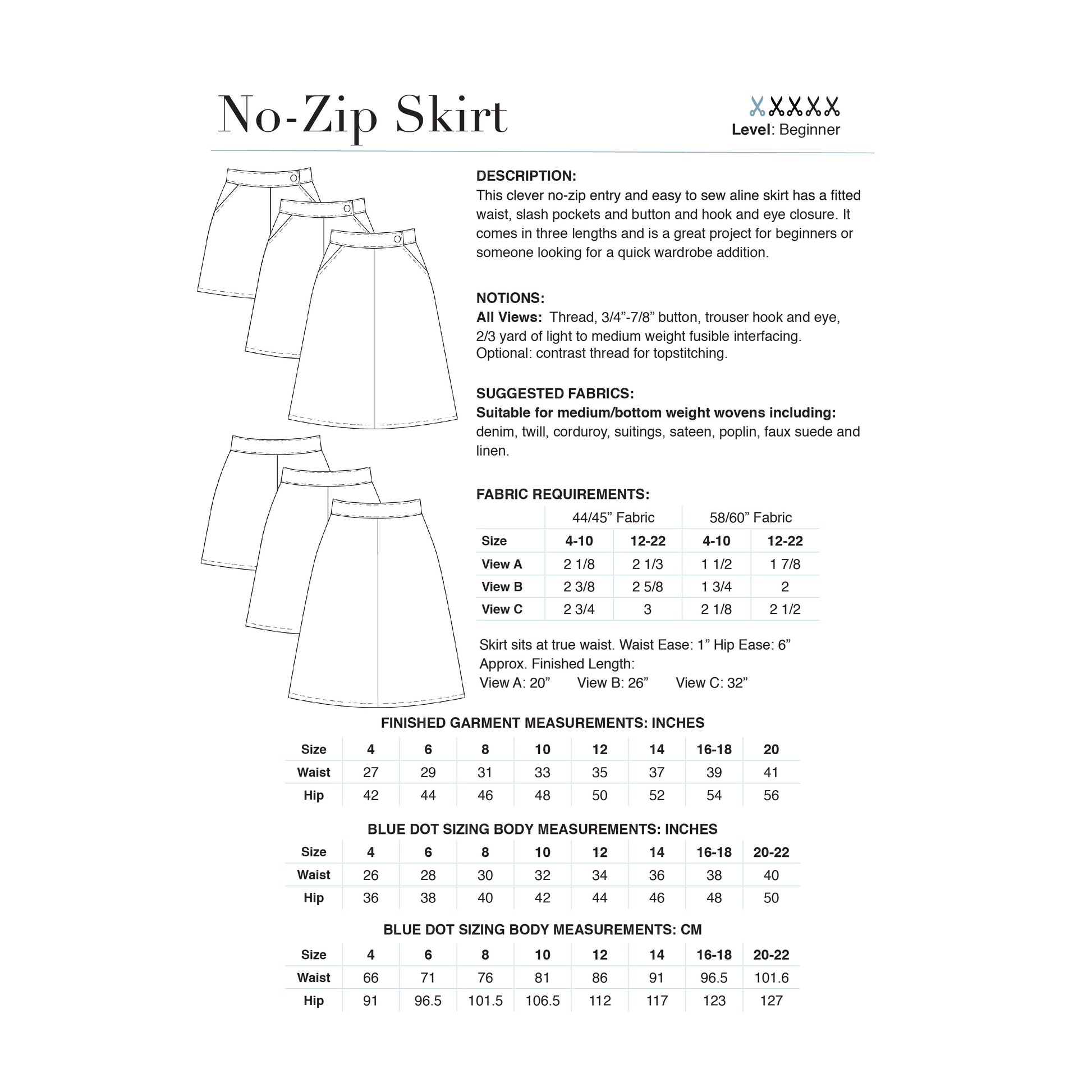 This clever no-zip entry and easy to sew aline skirt has a fitted waist, slash pockets and button and hook and eye closure. It comes in three lengths and is a great project for beginners or someone looking for a quick wardrobe addition.The package includes step by step instructions with detailed drawings, tiled/layered pattern and copy shop file for large format printing.