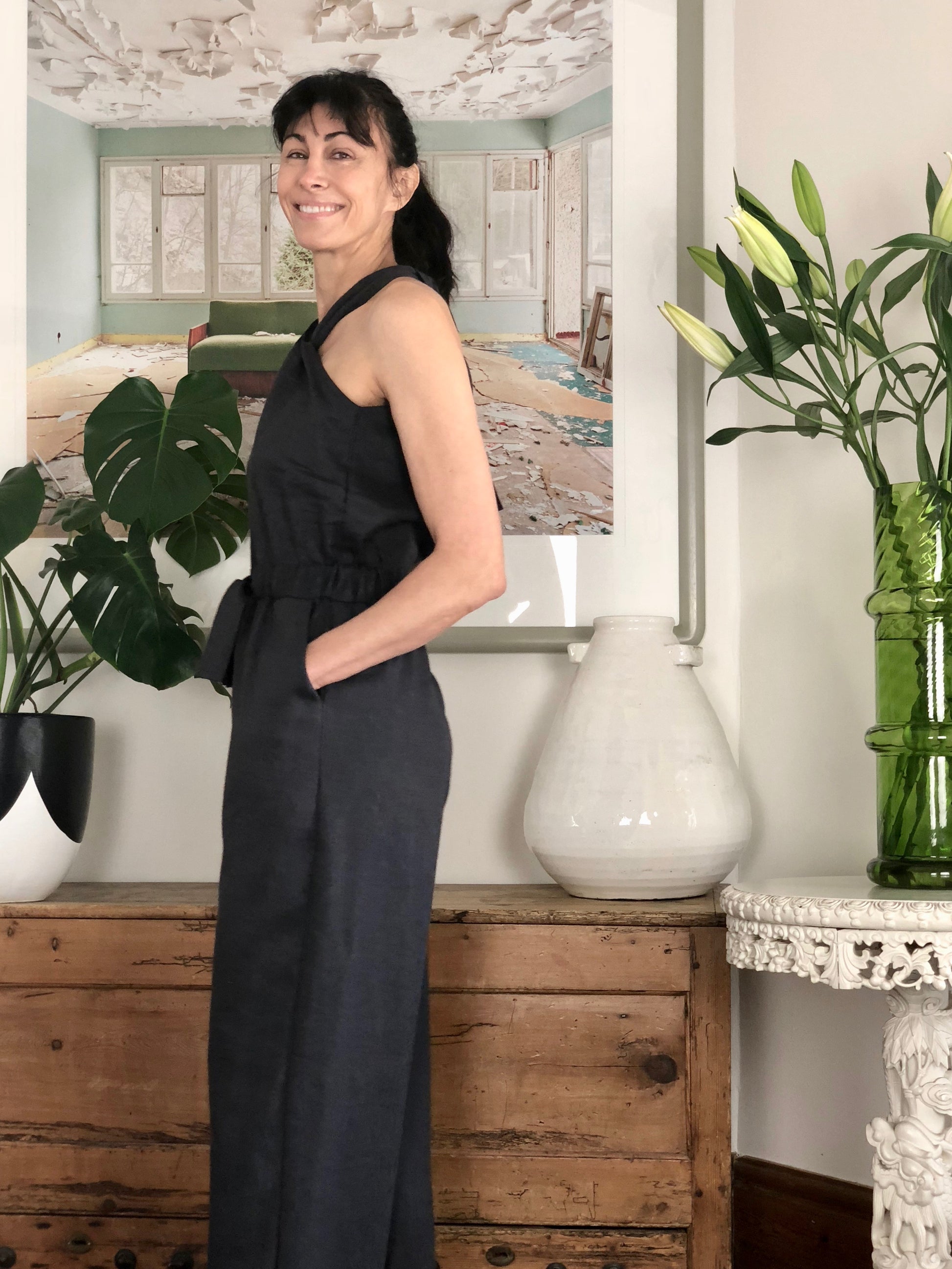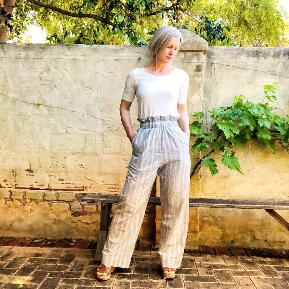 This is a super comfortable, flattering trouser that is designed to be adapted to your style. Like a block or sloper, you can adapt this into 3/4 pants, or shorts, and is intended to be a starting point in your own process as a designer for yourself!