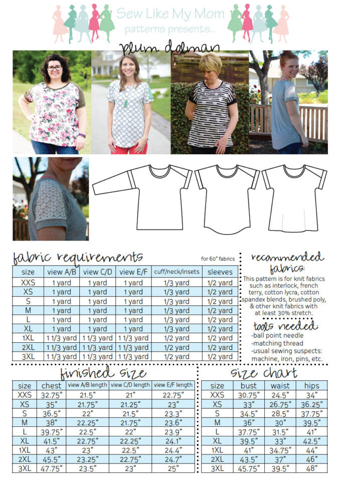 The Plum Dolman is a fantastic piece for any wardrobe! This relaxed fit dolman sleeve makes for a quick, fashionable sew, and the optional sleeves takes it straight through the seasons. The shoulder insets will delight women of all ages with their charming splash of interest! Plus, it’s a fantastic way to use up those scraps you just don’t want to part with. Dress it up or down, the many hem options makes this the most versatile top in your collection!
