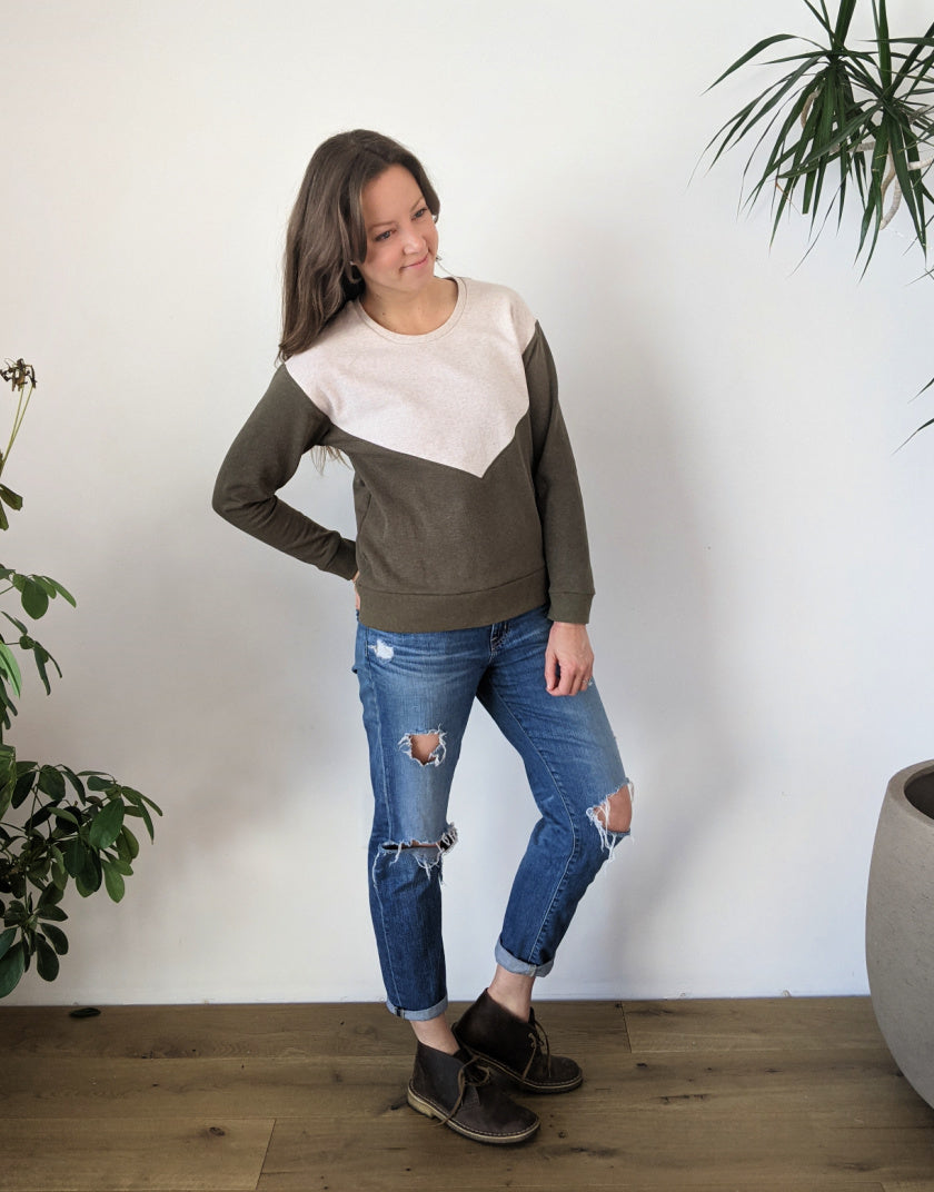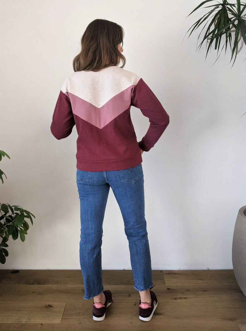 The Sitka Sweatshirt is a shrunken sweatshirt/sweater hybrid, perfect for casual dressing when temps are low. It is a great pattern for using up scraps, especially for View C. With the divided sections on the front and back pieces, there is ample opportunity for color blocking. Use 2-3 different fabrics that coordinate, create an ombre effect, or even use your favorite team’s colors.