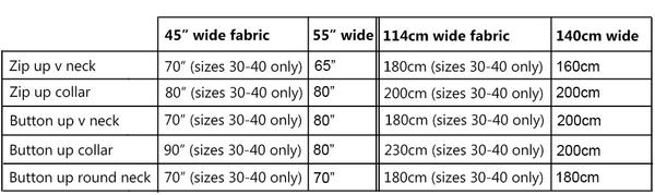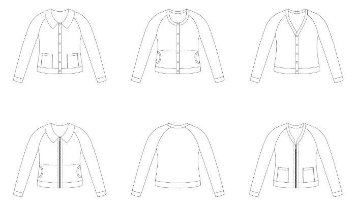Light-medium weight jersey/knit fabrics, such as merino wool, wool or acrylic blends, cotton knit, cotton blends, or even stretch lace. Make a cozy cardi for winter in a wool blend, or a lightweight one to throw on in spring or summer in a cotton or lace knit! For the zip front variation, use a medium weight fabric to ensure the zip has enough support. For the round neck variation, choose a softer fabric with good drape so the wide neck band sits close to your body.