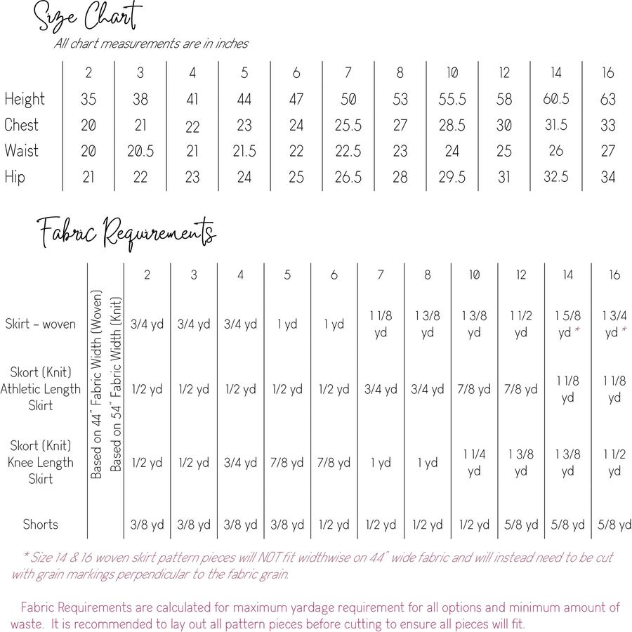 The Spruce Skirt/Skort can be made as either a woven knee-length skirt with an invizible side zip, or as a knit skirt with the option of attached shorts (to make a skort) and a fold-over elastic waistband. The shorts pattern pieces can also be used to create separate shorts. The knit skirt/skort comes in both shorter athletic length (for more freedom of movement) and knee-length. Optional piping in the waistband seam adds another fun element to this garment.