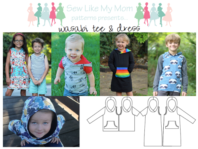 The Wasabi Tee and Dress is your quintessential basic pattern! With multiple sleeves, hemlines, and extras, there will always be a need for a Wasabi! A twist on a basic top, the Wasabi is spiced up with a hood, a kangaroo pocket, or both! With separate fits for boys and girls, this unisex pattern will be the perfect addition to your collection for all the handmade wearers in your life!