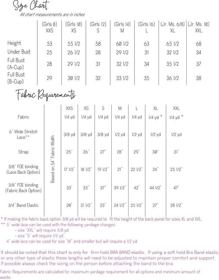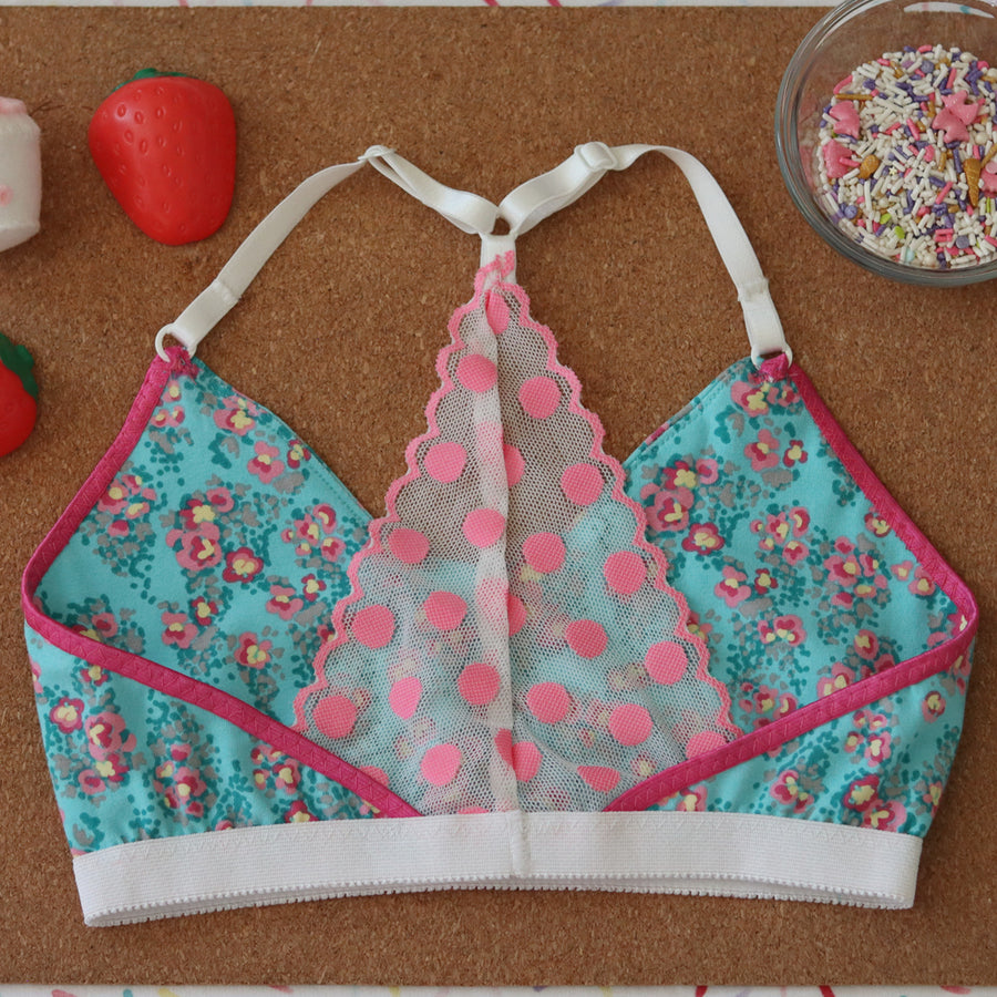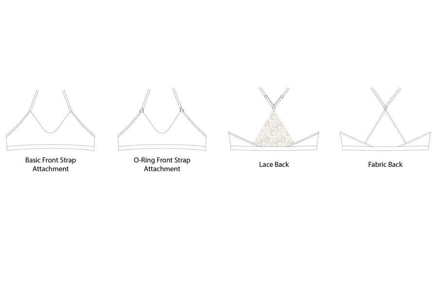 The Wild Strawberry Bralette is available in a B-Cup or smaller. With its more shaped neckline and lace back option, this bralette has a bit of a fancier feel to it. Adjustable length straps attach to the top of a the triangular back panel which can be made in stretch lace or fabric. The front panel is designed with pocket access for inserting foam cups (for those desiring a bit more coverage). Why not try out our FREE cut-and-sew foam cup insert pattern found in the blog post (link at the bottom of this listing).
